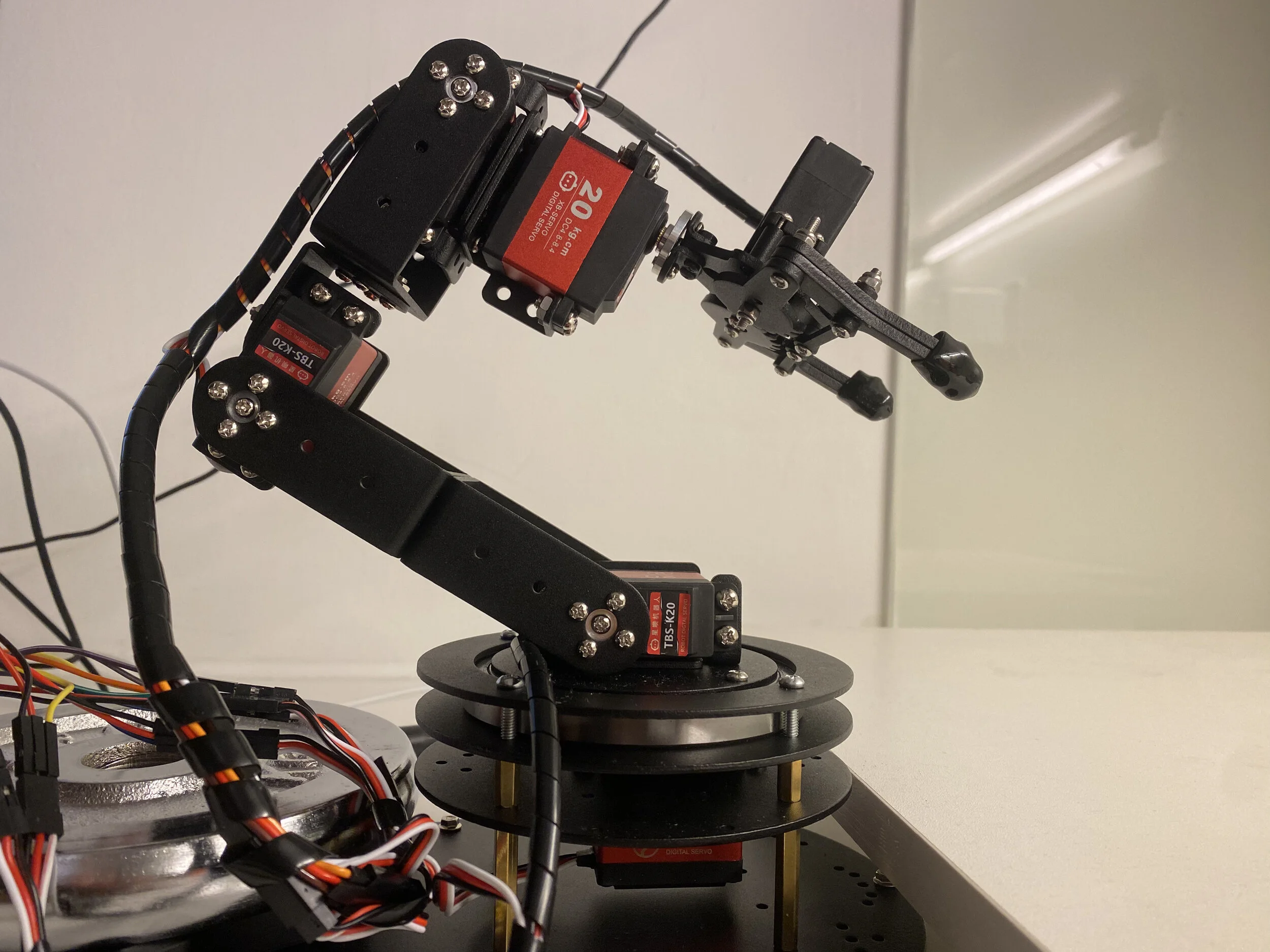I switched my final project idea because I worked with a simple preassembled robot arm made with six digital servos for a couple of weeks. And I was not too fond of the look of this arm with exposed wires, frames, and motors. It was also inspired by the most expensive monitor stand made by Apple. I wanted to bring those hinge designs to a robot arm. A slick and simple appearance that hides all the complications inside.